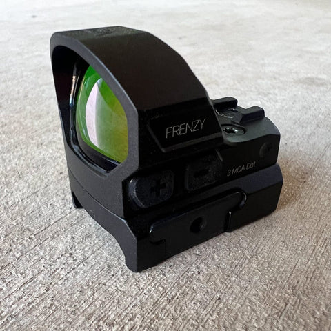 Perfect for multi-target engagements or maintaining full situational awareness, the Frenzy SRD gives you the edge you need. The wide, crystal-clear lens delivers an expansive field of view, helping you quickly spot and track targets in fast-moving scenarios. Its precise, 3MOA dot gives you the perfect blend of speed and precision, while its 50,000 hour runtime, bombproof construction, and IPX7 waterproof rating ensures it will withstand harsh climates better than you can! Finally, the Frenzy SRD is compatible with RMS and RMSc mounting footprints. This feature-packed optic combines precision, durability, and convenience, making it an indispensable tool for serious shooters!