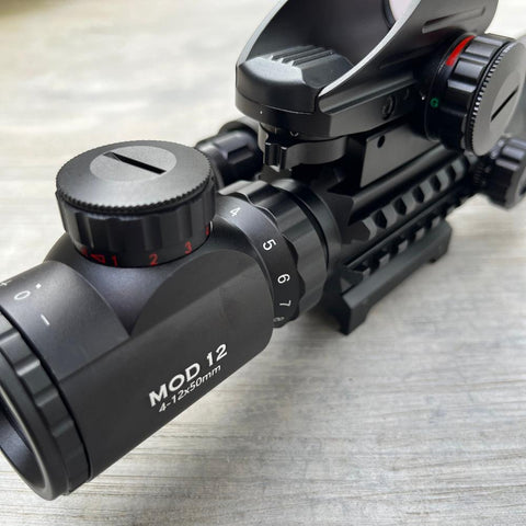 Choose from 4-12x or 4-16x configurations, each equipped with a compact holographic red dot mounted on top for fast transitions between magnified and unmagnified sight pictures. Fully nitrogen-purged and built from durable materials, this scope delivers crystal-clear image quality, impressive light transmission, and reliable performance across a range of conditions. Optional selectable red or green laser provides an additional aiming reference for convenience and versatility.