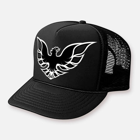 This Trucker Hat is part of a VIP product collection. This is a tall Curved Bill Trucker Hat...with a sick ass Party Bird printed on the front. Git on it!