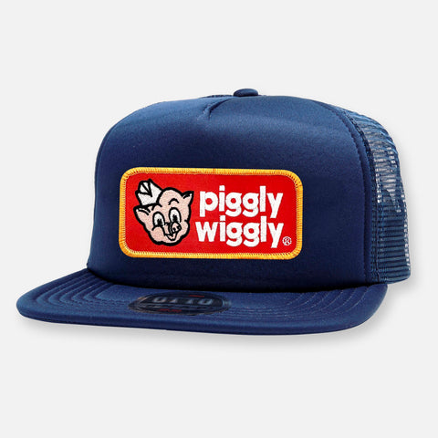 Get on down to the Piggly Wiggly! This Piggly Wiggly hat is part of our new Classic Trucker Hat Collection. This mean trucker hat features a big burly vintage Piggly Wiggly patch sewn on the front panel. This classic Trucker Hat is as old school cool as it gets!