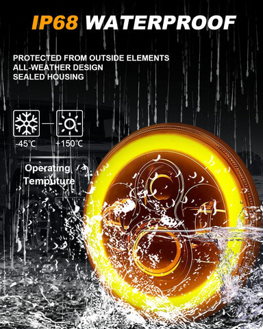 - 7 Round Headlight Quality: The 7 inch headlight has a breather valve, if those headlights start to develop moisture inside, you can just open these breather boards running for about two hours, then close them, and that should fix the problem. issue. Good impermeability and heat dissipation that guarantees a useful life of more than 50,000 hours. Classic design 7 LED headlight with DRL angel eyes halo ring, meet your needs in any situation.