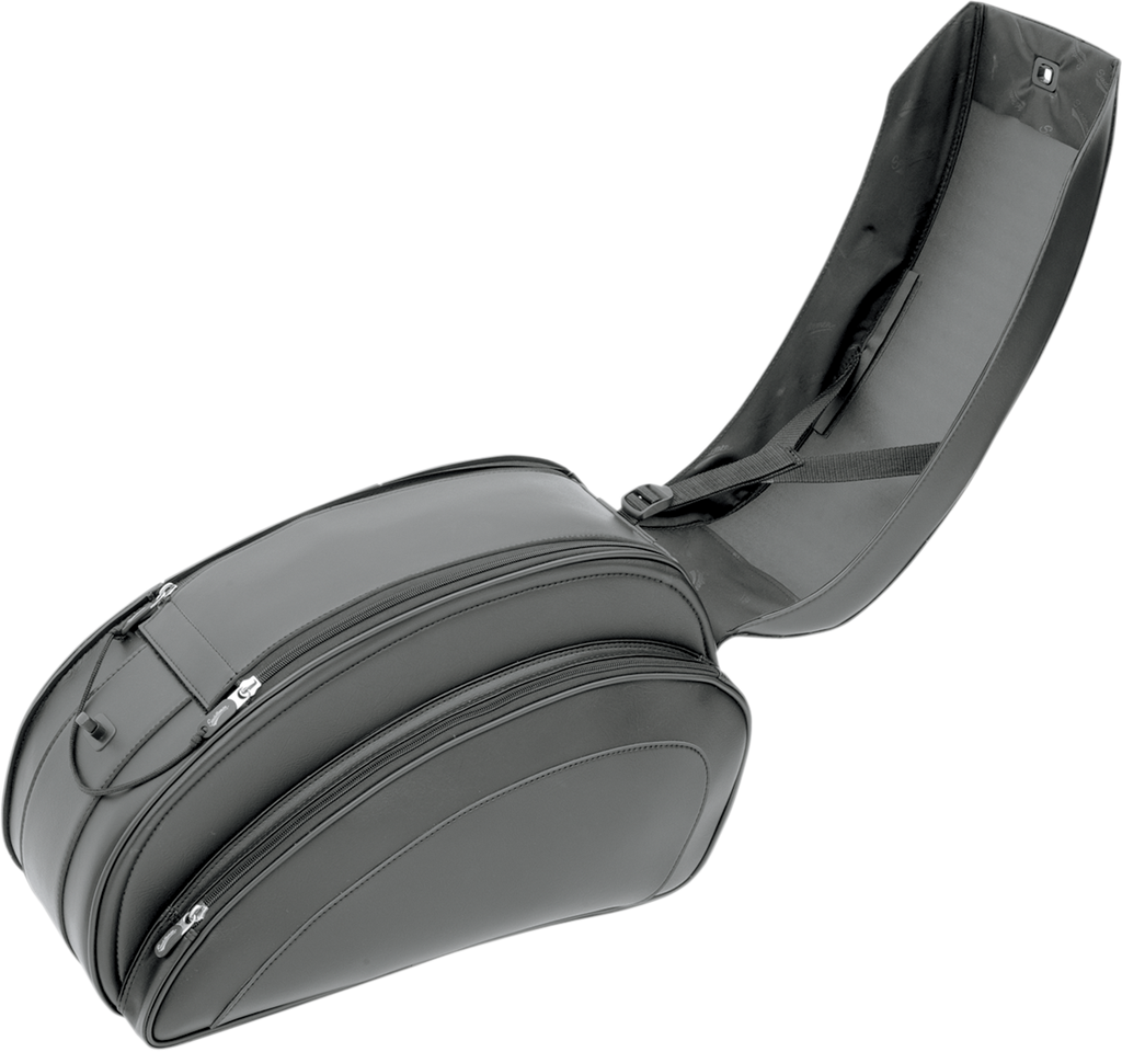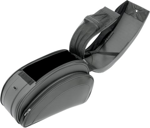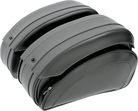 - Distinctively styled saddlebags look great on any style motorcycle, with a layered lid and spacious zippered side pouches that flow together to create truly handsome luggage