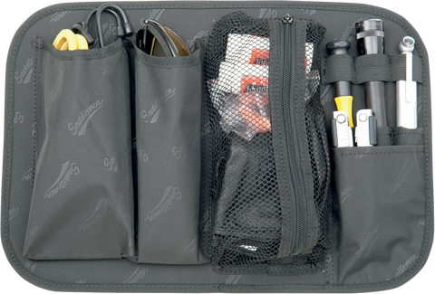 - Pouches are shaped to hold tools, electronics or other convenience items