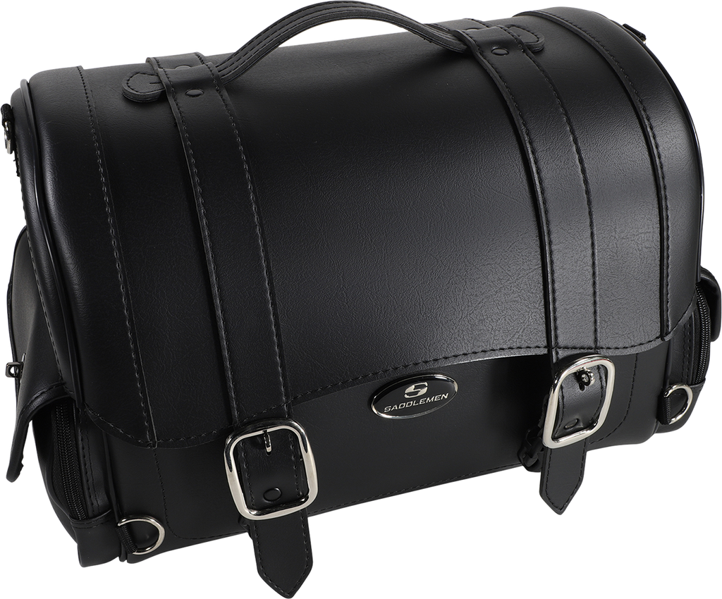 - Sleek-styled tail bag featuring straps and large chromed buckles