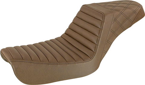 SADDLEMEN Step-Up Seat - Front Tuck-n-Roll/Rear Lattice Stitch - Brown - FXD 804-04-176BR