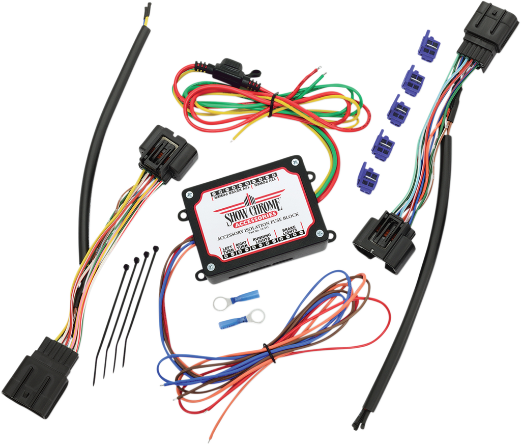 - Includes turn signal, running lights, brake light, always on and keyed connection points