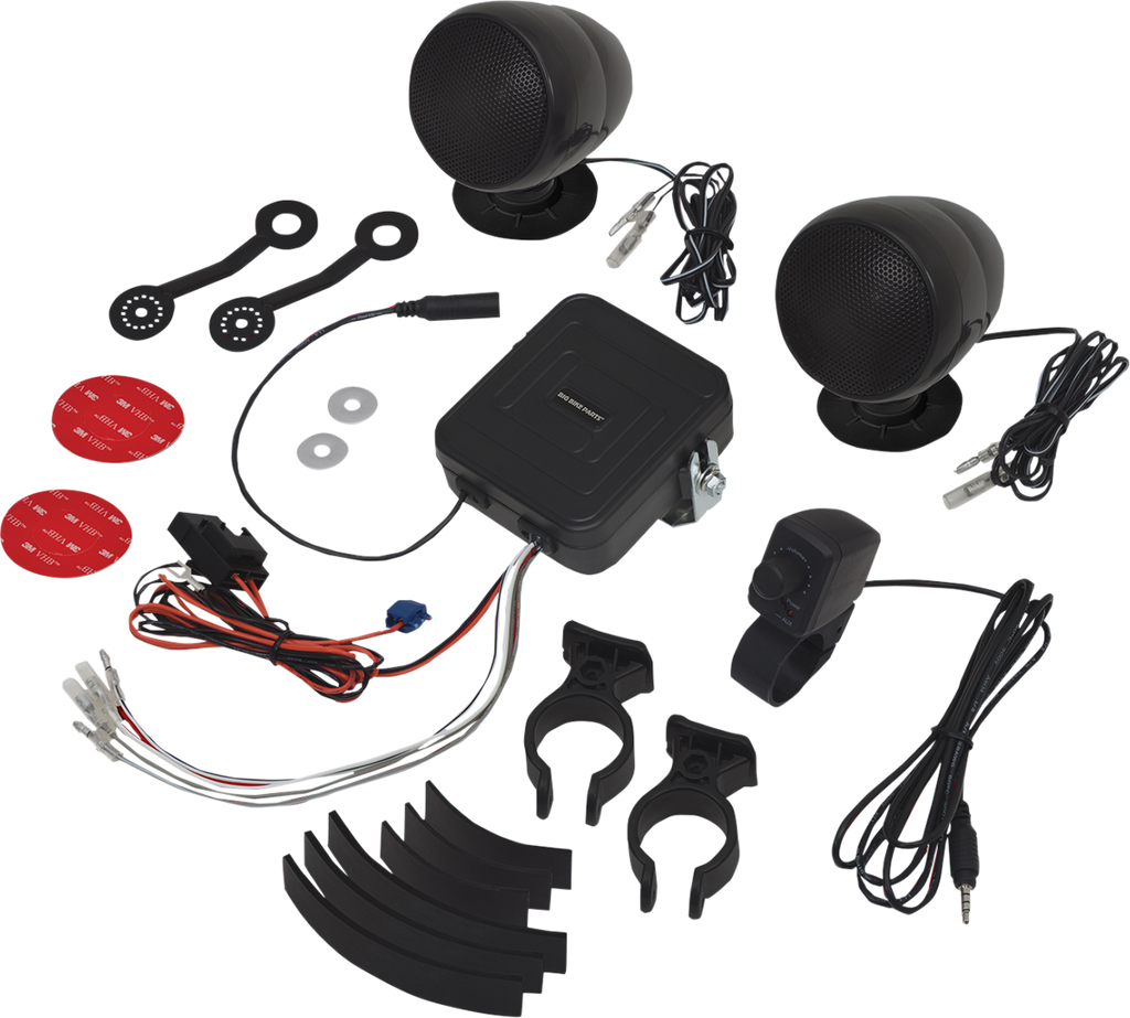 • Universal clamps allow mounting directly to the handlebars, positioning the sound where you want it