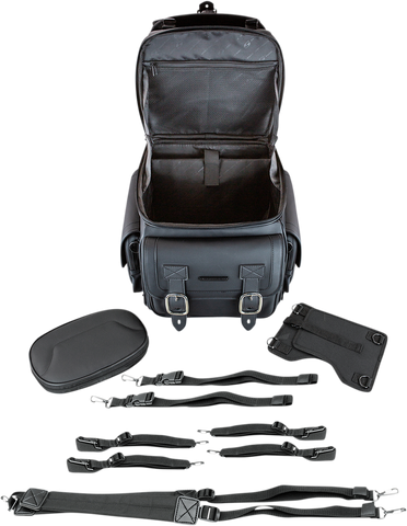- Easily attaches to sissy bar, plus a strap kit for a variety of mounting options