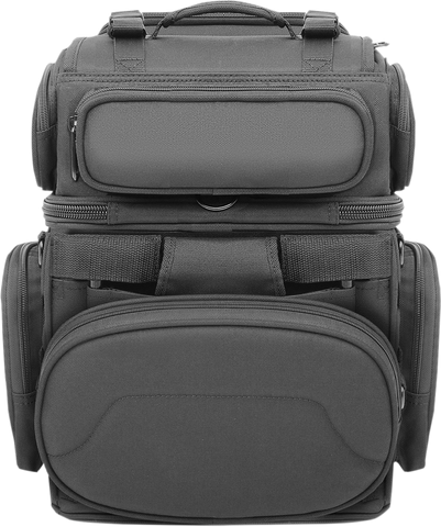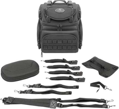 - Two mounting systems included - a seat harness or adjustable sissy bar strap system easily attaches bag to your motorcycle's seat, luggage rack, or sissy bar