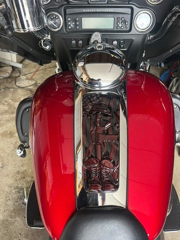 Custom built Harley console insert for 08+ Ultra/Electra glide touring console insert 3D Soldiers cross. Can do any design, color combination or style of bike. These are individually built and designed for the customer. These take about 3 weeks to build. We will verify information after the order is placed. Contact us if you have any questions or special requests.