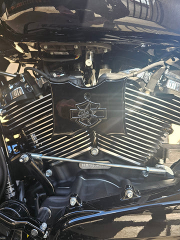 The design will stay as the main design, Choose the shape of the cover, colors and year. These fit most all 4" coils for Harley-Davidson side-mounted coil cover. These are individually built and designed for the customer they take about three weeks to build. We can do any color combination, year or make of bike. We will verify the order after it's been placed. FITMENT all 18+ softail and 24+ Road Glide or Street Glide