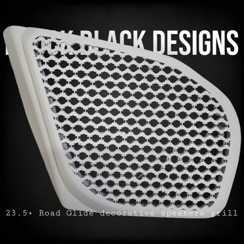Introducing our revolutionary 3D Road Glide speaker covers that seamlessly accommodate speakers of all sizes. Each cover is meticulously crafted to order, tailored exclusively for you, with a production timeline of approximately three weeks. Personalize your experience with a spectrum of color combinations, and we cater to any bike's year or make. Order verification ensures precision before production.