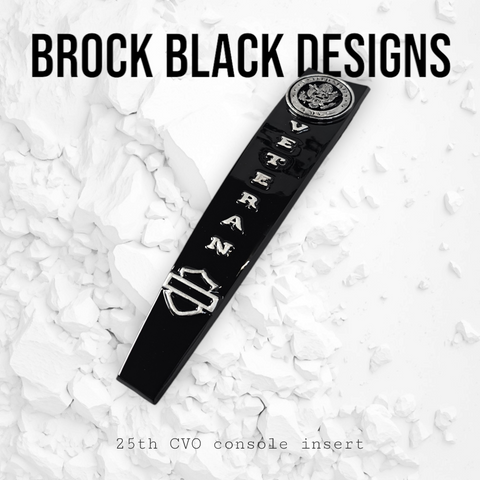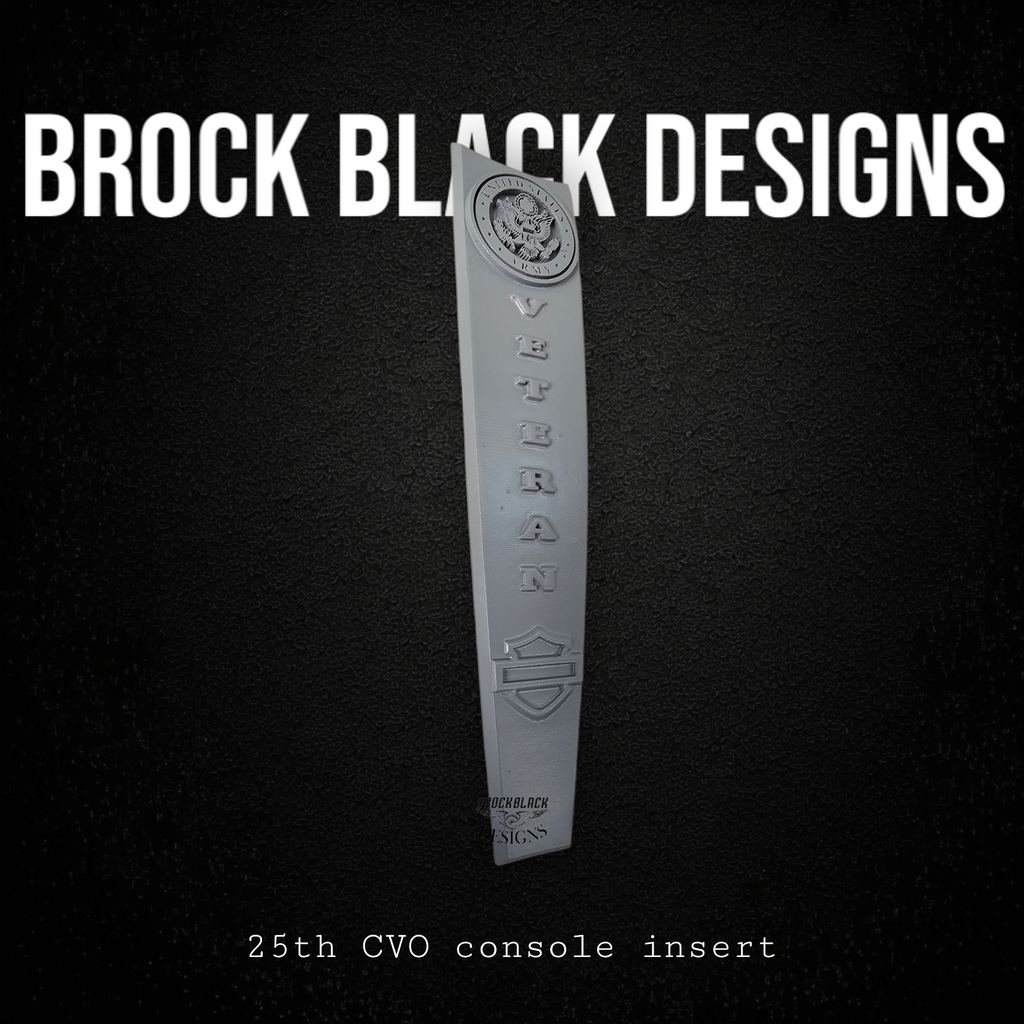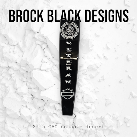 Custom built Harley console insert with 3D Army Veteran theme. Can do any design, color combination or style of bike. These are individually built and designed for the customer. These take about 3 weeks to build. We will verify information after the order is placed. Contact us if you have any questions or special requests. Measures 1.75 top, .75 bottom and 8.15" length.