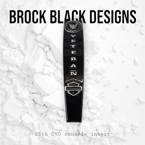 Custom built Harley console insert with 3D Navy Veteran theme. Can do any design, color combination or style of bike. These are individually built and designed for the customer. These take about 3 weeks to build. We will verify information after the order is placed. Contact us if you have any questions or special requests. Measures 1.75 top, .75 bottom and 8.15" length.