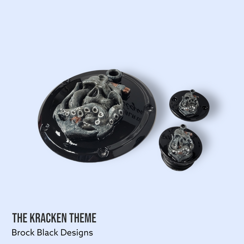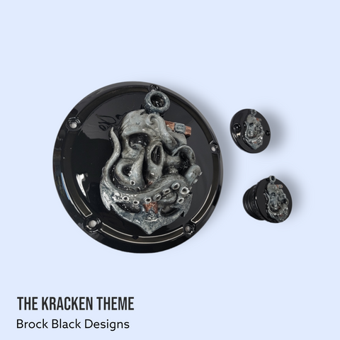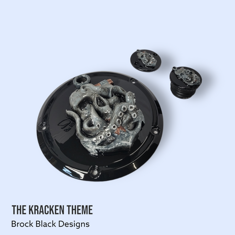 Custom built 3D The Kraken derby cover, points and fuel cap. Can do any design, color combination or style of bike. These are individually built and designed for the customer. These take about 3 weeks to build. We will verify information after the order is placed. Contact us if you have any questions or special requests.