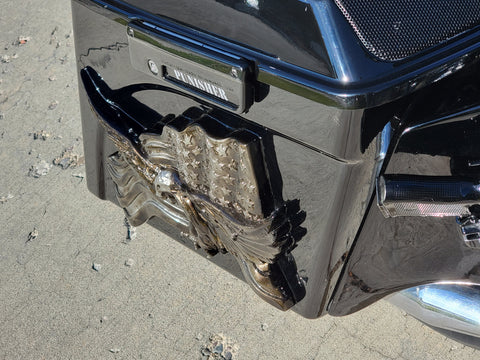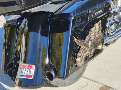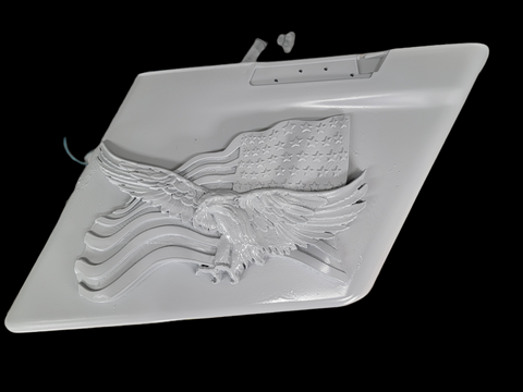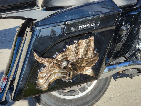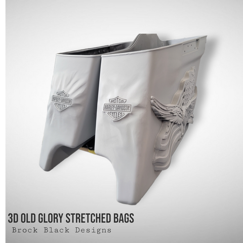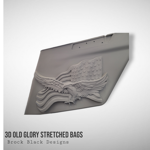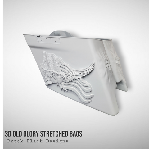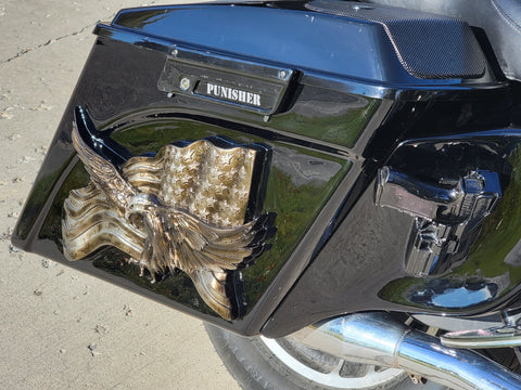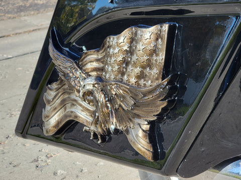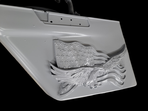 Custom Built 3D eagle and flag rear bag systems primed. Can do any style, design, color combination or theme for an additional cost. Stock lids and all bag accessories included. These are individually built and designed for the customer. These take 3 to 4 weeks to build. We will verify the order and any changes upon order received.