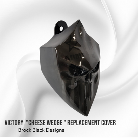 Brock Black Designs covers are a direct replacement for the factory cheese wedge. Can be used on left or right side. Left side comes with new bracket and ignition relocation bracket that bolts directly up to our covers. Right side comes with new bracket to replace cheese wedge. These are individually built and designed for the customer. We can do any color combination or theme. Normally take 3 to 4 weeks to build. We will verify the order when placed.