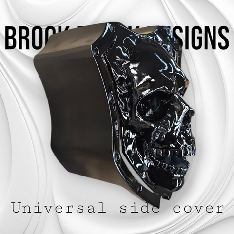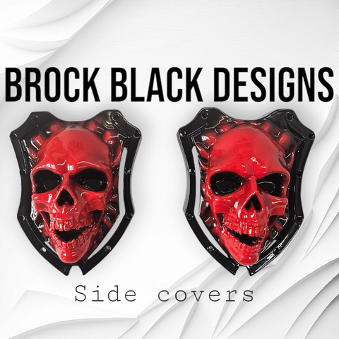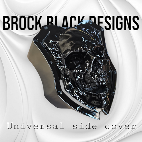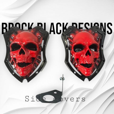 Brock Black Designs covers are a direct replacement for the factory cheese wedge. Can be used on left or right side. Left side comes with new bracket and ignition relocation bracket that bolts directly up to our covers. Right side comes with new bracket to replace cheese wedge. These are individually built and designed for the customer. We can do any color combination or theme. Normally take 3 to 4 weeks to build. We will verify the order when placed.