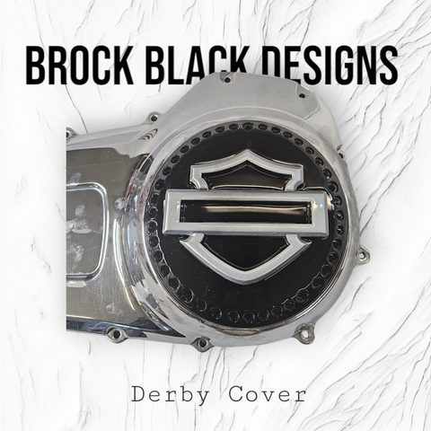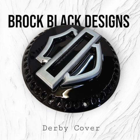 Custom built 3D shield themed Harley-Davidson derby cover. Can do any design, color combination or style of bike. These are individually built and designed for the customer. These take about 3 weeks to build. We will verify information after the order is placed. Contact us if you have any questions or special requests.