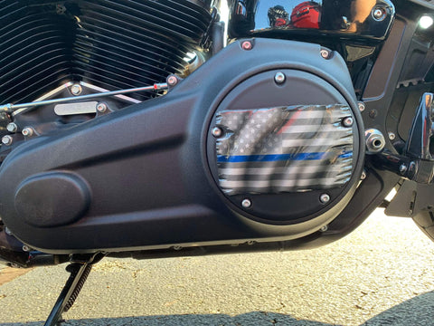 Custom built 3D tattered American flag on a Harley-Davidson derby cover with wrinkled flat background. Can do any design, color combination or style of bike. These are individually built and designed for the customer. These take about 3 weeks to build. We will verify information after the order is placed. Contact us if you have any questions or special requests.