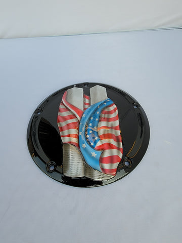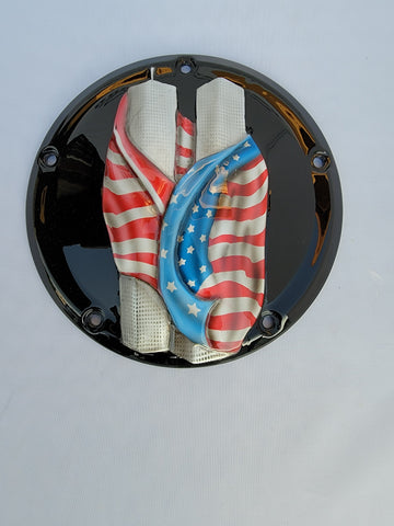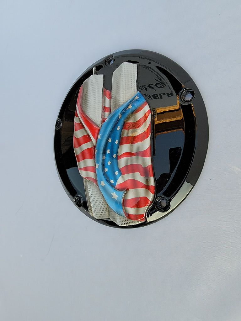 Custom built 3D Twin towers themed derby cover. Can do any design, color combination or style of bike. These are individually built and designed for the customer. These take about 3 to weeks to build. We will verify information after the order is placed. Contact us if you have any questions or special requests.