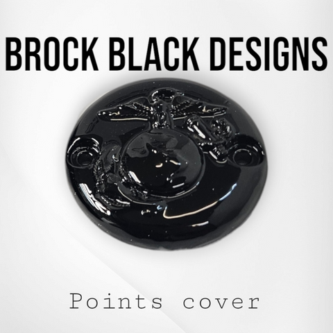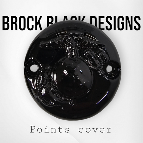 Custom built 3D USMC on Harley-Davidson points cover. We can build either design with stretching through or not. Can do any design, color combination or style of bike. These are individually built and designed for the customer. These take about 3 weeks to build. We will verify information after the order is placed. Contact us if you have any questions or special requests.