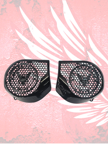 Introducing our revolutionary 3D speaker covers that seamlessly accommodate speakers of all sizes. Each cover is meticulously crafted to order, tailored exclusively for you, with a production timeline of approximately three weeks. Personalize your experience with a spectrum of color combinations, and we cater to any bike's year or make. Order verification ensures precision before production.