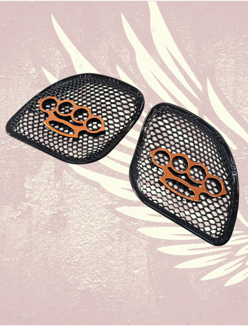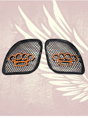 98-2024 Road Glide 3D brass knuckles speakers grill covers set