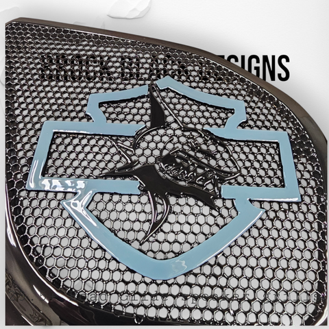 Select you year, colors combination and style of grill and when the order is placed, we will confirm all aspects of the order and individually build and paint them. If you have specific instructions or color of bike, put in notes during checkout. Any questions, please reach out and we can discuss your design. Normally takes about 3 weeks to build. Depending on the color combination, lighter shades in two-tone designs may show visible brush strokes, as the 3D portion is hand-painted.