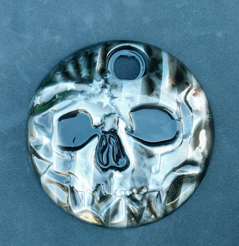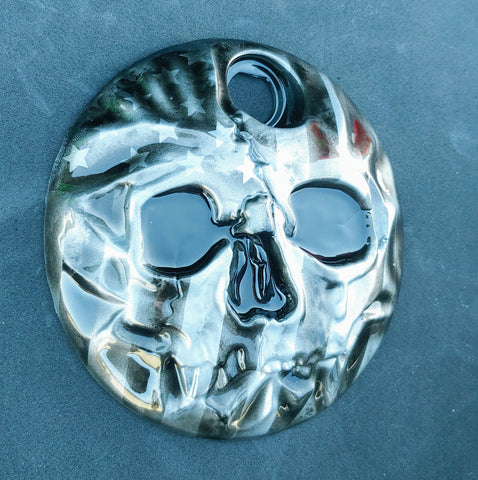 American flag stretch through a realistic skull on Harley touring fuel door