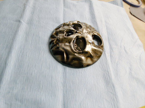 Custom built 3D skull on a  fuel door. Can do any color or design. Can also do any year or make of bike. These are individually built and designed for the customer. These take about 3 weeks to build. We will verify information after the order is placed.