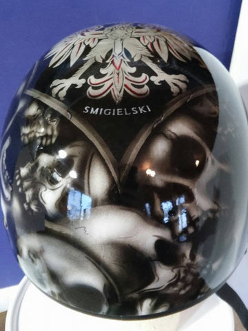 DOT Custom Polish Eagle with Medieval skulls theme. Can make any size and style of helmet. These are hand carved and airbrushed for an unique look.