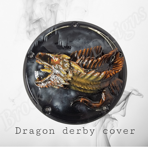Custom built 3D Dragon derby cover. Can do any design, color combination or style of bike. These are individually built and designed for the customer. These take about 3 weeks to build. We will verify information after the order is placed. Contact us if you have any questions or special requests.