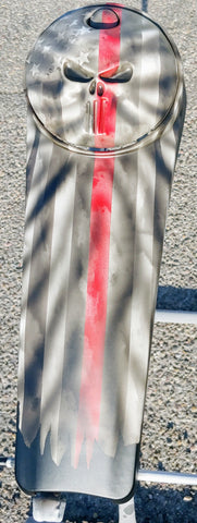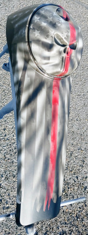 Custom built Punisher Firefighter tribute in black and white with a tattered and worn American flag denim finish. Can do any style, design or theme. We can do modify the design to your liking. Take about 3 to 4 weeks to build and price may vary if you supply the console.