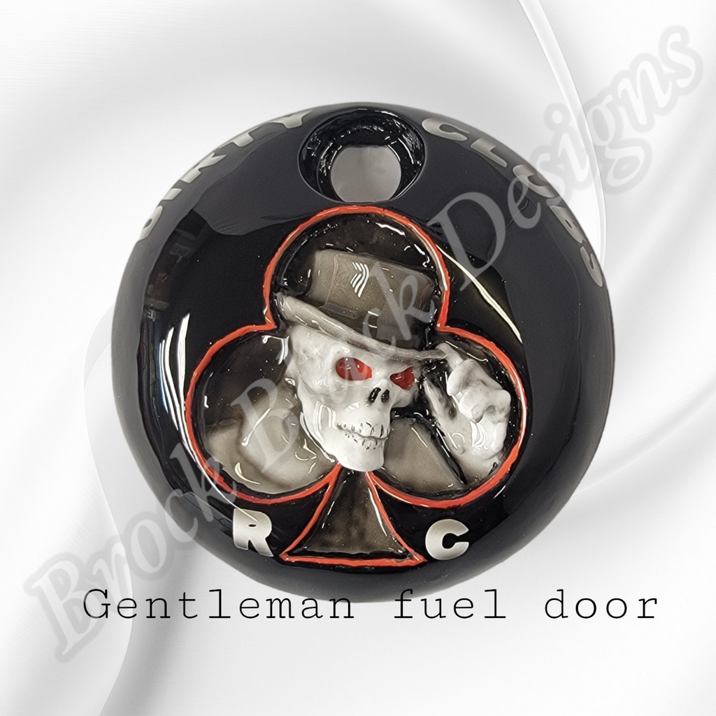 Custom built 3D gentleman skull on a fuel door. Can change design however you see fit. Can do any style, design or theme. These are individually built and designed for the customer. These take 3 to 4 weeks to build. We will verify the order and any changes upon order received.