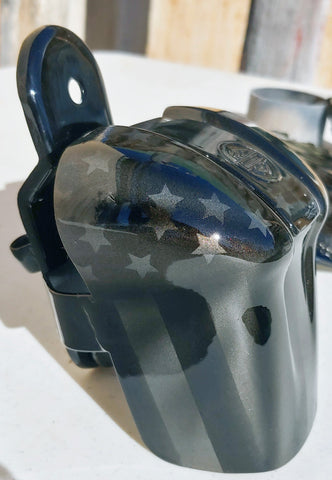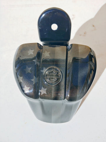 - Custom built 3D American flag tattered waterfall horn cover. These fit all models of Harley-Davidson and OEM horn will fit. These are individually built and designed for the customer they take about three weeks to build. We can do any color combination, year or make of bike. We will verify the order after it's been placed.